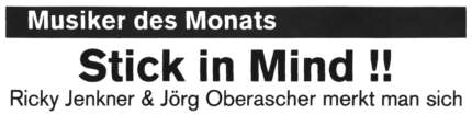 Der erste Auftritt des Gitarren-Duos fand im Rahmen von "Kultur in Nordheim 1999" statt, damals noch ohne Namen. Die äußerst positive Resonanz ließ uns keine andere Wahl: STICK in MIND war geboren. Es folgten kurz darauf Vernissagen, Geburtstage und weitere Musiker-Festivals mit Beiträgen von STICK in MIND. Mit außergewöhnlichem Erfolg fand im Oktober 1999 als Höhepunkt des Jahres das erste abendfüllende Konzert in Nordheim statt. Der Saal platzte aus allen Nähten und bot die ideale Kulisse für unsere erste CD "Alive".